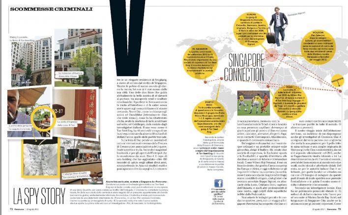 Nel 2012 sono stato a Singapore sull’onda dello scandalo mondiale del calcioscommesse, per capire meglio i meccanismi e i personaggi dietro questo fenomeno.