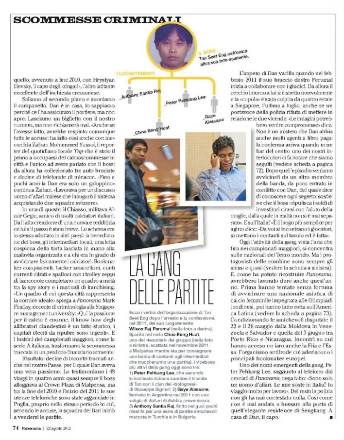 Scommesse criminali, Panorama – 22 agosto 2012